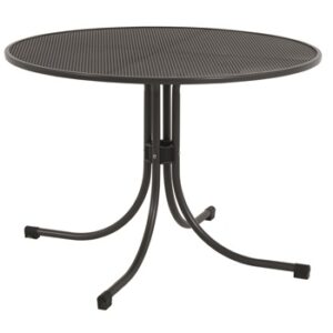 Kruhový stůl z tahokovu v tmavě šedé vyniká svými velkorysými rozměry, minimálně pro 4 osoby. Díky úpravě Elotherm, kterou naleznete pouze u produktů MWH, odolá stůl i náročným klimatickým podmínkám a je v podstatě bezúdržbový. Má nastavitelnou výšku nohy pro vyrovnání nerovného podkladu.